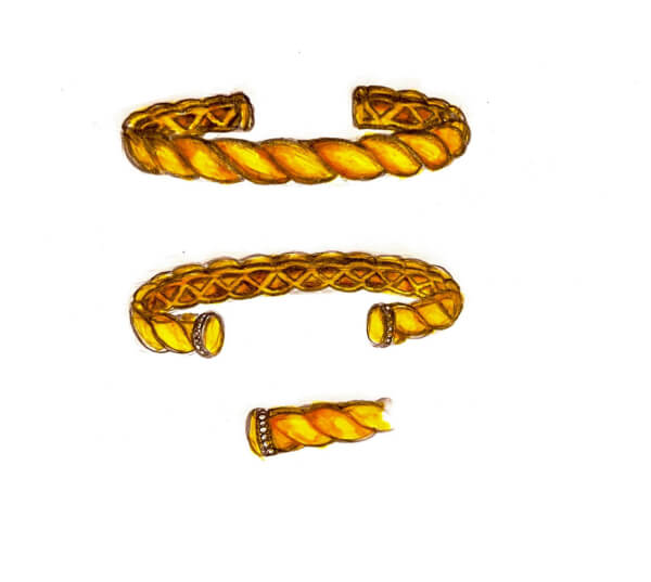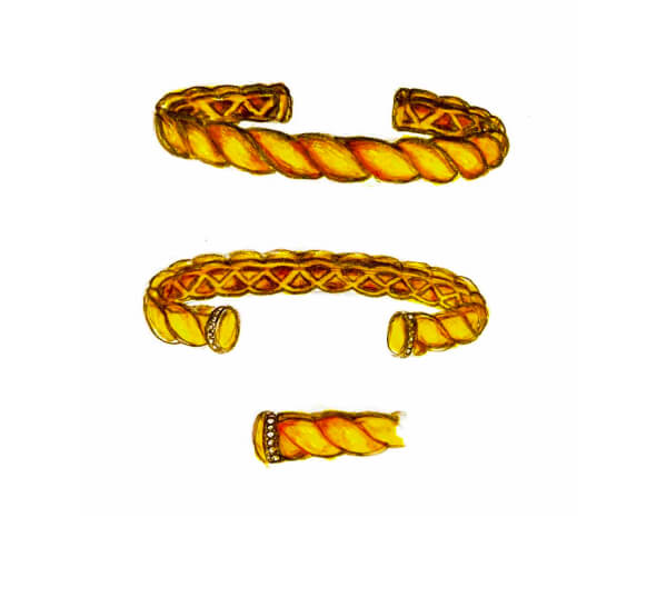 A Unique Approach to Jewelry DesignThis piece doesn't just exude sophistication; it embodies it, making it the quintessential addition to any collection. Every facet of this piece has been thoughtfully designed to symbolize the patterns and themes that are seen throughout Phoebe's work. The diamonds that enhance both edges of the piece are a nod to Phoebe's meticulous attention to detail, while the gold setting epitomizes her refined and polishedapproach.