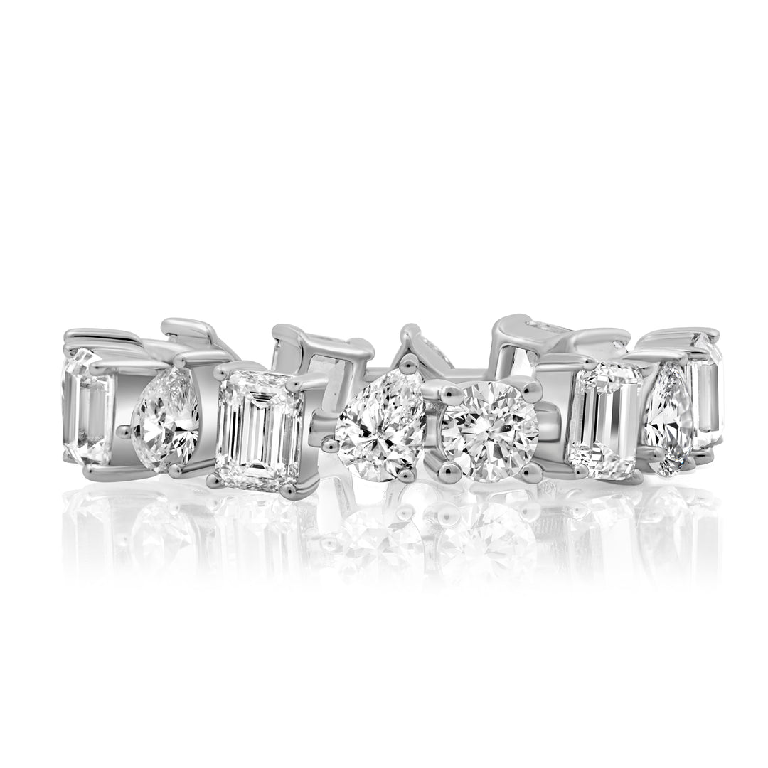 Emerald-Cut Diamond Gypsy Set Ring with Trapezoid Side-Stones