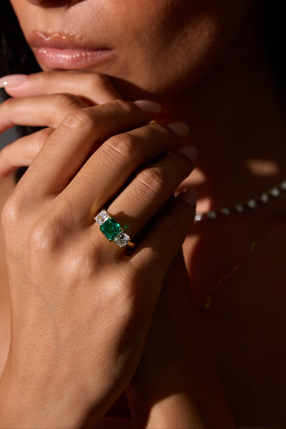 Emerald-Cut Diamond with Trapezoid Side Stones Ring