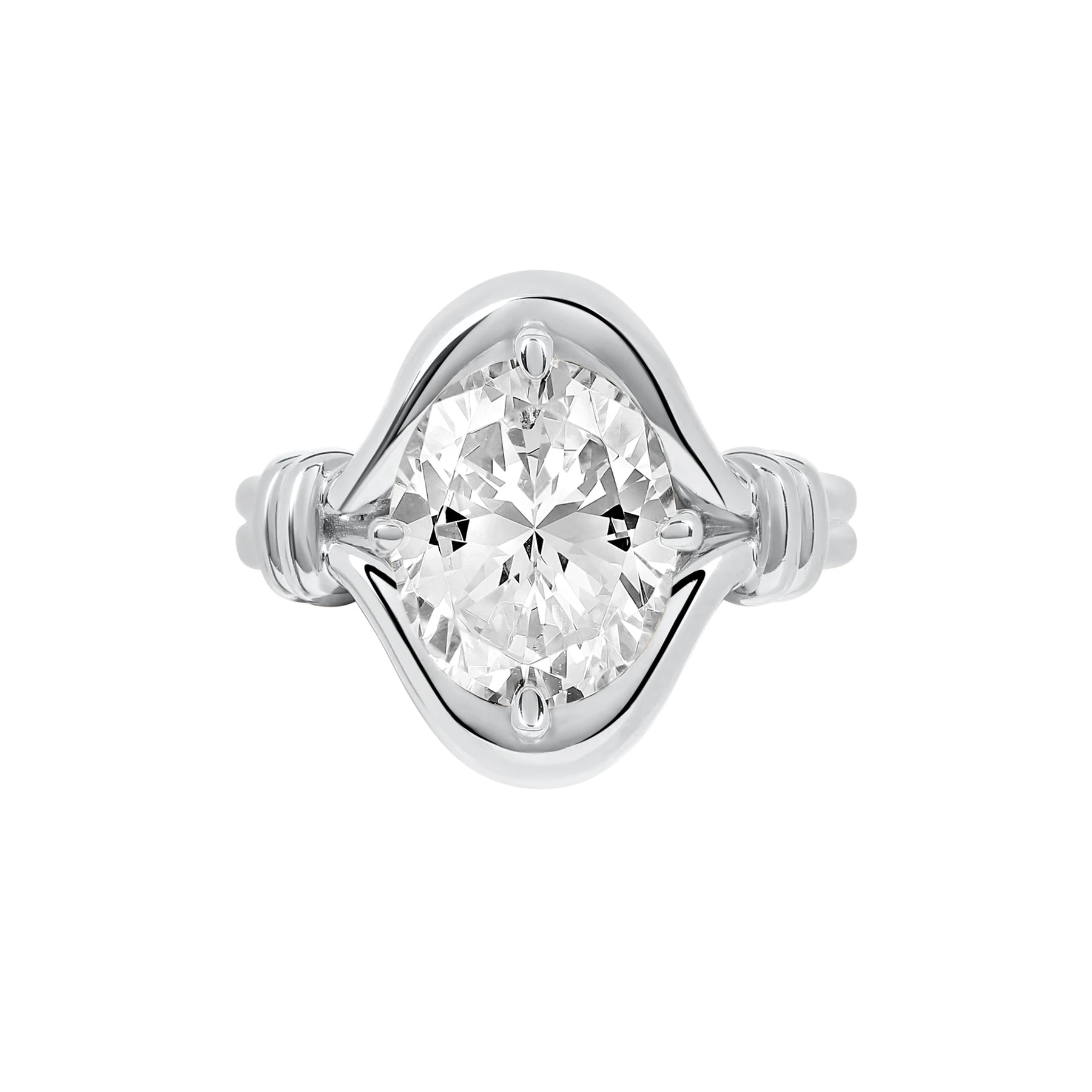 Oval Diamond Chunky Bezel with a North-South Prong Setting.